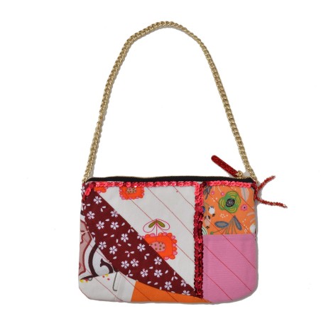 Bolso en patchwork de tejidos reciclados con asa de cadena